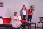 Es mussten die Impfungen überprüft und Einverständniserklärungen der Eltern eingeholt werden, Mitspieler verließen die Gruppe, neue konnten gewonnen werden. Ein harter Kern von Spielern aber wollte das Stück nicht aufgeben. Und so war es ein bisschen unwirklich, als sich mit einem mal Anfang des Jahres, ein konkreter Termin zur Aufführung am Horizont abzeichnete. Noch einmal mussten wir umbesetzen, aber jetzt war es unumkehrbar, die Plakte waren gedruckt, unsere Premiere war am 04.11.2022. Nach dem „Grüffelo“, „König Florian‘s Tochter haut ab“ und „Geister in Downing Street“ war das das vierte Stück der Jugendgruppe des Theatervereins Niederwallmenach. Das Märchen „Schneewittchen“ ist wohlbekannt. Doch was wäre, wenn die Geschichte nicht im Mittelalter stattgefunden hätte, sondern im Hier und Jetzt. Schneewittchen hat jetzt keine Zwerge mehr, ist politisch auch nicht mehr korrekt, sondern lebt in einer Wohngemeinschaft mit 2 Freundinnen. Die böse Stiefmutter leidet wie gewohnt am Schönheitswahn (naja, manche Probleme ändern sich halt nie, was ihr Spiegel durchaus bestätigen kann) und besucht jetzt zeitgemäß eine Therapiegruppe, in der auch andere bekannte bösen Märchengestalten, wie der böse Wolf, Rumpelstizchen oder die böse Hexe wegen ihrers Aggressionspotenzials Hilfe suchen. Die große Liebesgeschichte darf natürlich auch nicht fehlen und wird, wie heutzutage üblich, natürlich auch verfilmt. Das Publikum bei der Premiere war toll, ging mit und spielte den Funken an die Schauspieler zurück, die daraufhin alle noch ein Stück weiter über sich hinauswuchsen. Alles lief, nach ein paar technischen Problemen vor Beginn, wie am Schnürchen. Die Anspannung war greifbar, aber sie führte auch zu erhöhter Konzentration und Fokusierung auf das Spiel. Das Agieren vor vollem Haus setzte bei einigen noch mal immense Reserven frei. Es war eine fantastische Verbindung zwischen Publikum und Spielern zu spüren, die insgesamt einen tollen Abend ergaben.