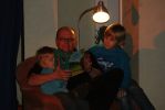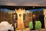 Das Bühnenbild war ein bißchen improvsiert. Die Erwachsenengruppe probte für ihr Stück, wir brauchten auch Bühnenraum für die Handpuppen und die Bühne war schon vorbereitet für "Und alles auf Krankenschein" das geplante Erwachsenenstück. Es war also Flexibilität vonnöten.