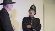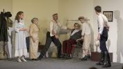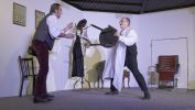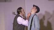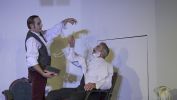 Im Jahr 2018 mal wieder keine Komödie. Oder besser ein rabenschwarzes Stück von Christopher G. Bond, das seinen bösen Humor nur gut maskiert. Sweeny Todd ist ein Barbier der aus reiner Habgier seinen Kunden die Kehle durchschneidet und sie dann von seiner Nachbarin zu wohlschmeckenden Pasteten verarbeiten lässt. Die wird dann gewinnbringend in den Mägen der Nachbarschaft entsorgt. Das Stück wurde als Musical mit Johnny Depp verfilmt. Aber wer braucht schon Johnny Depp! Der geniale Plaktentwurf stammt von Miriam Franken. Die Bilder sind mit freundlicher Genehmigung von Michael Hotschicke schokoladenseite-fotografie aufgenommen worden.